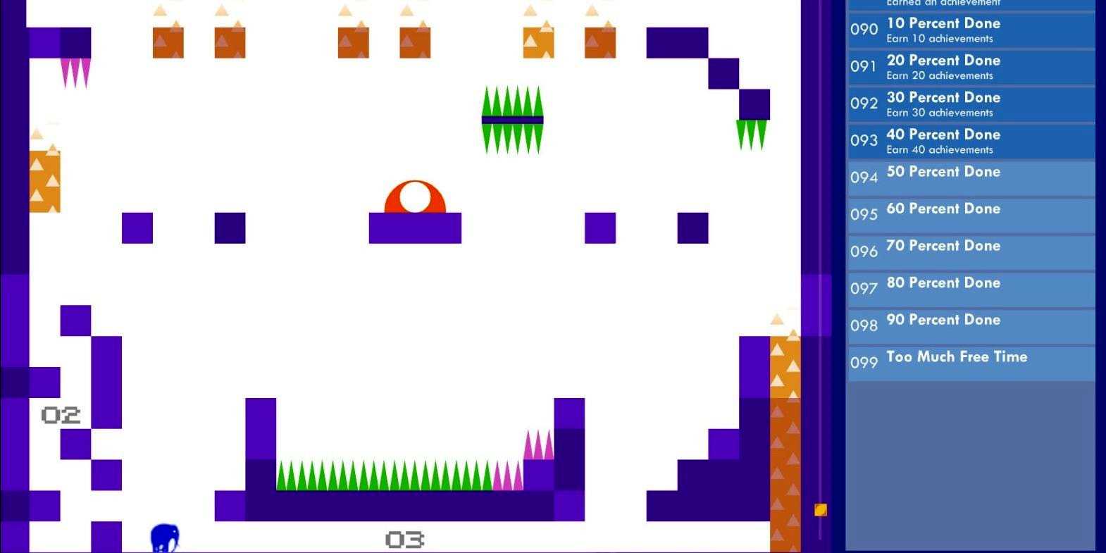 В Achievement Unlocked основное внимание уделяется первому. Первая игра Achievement Unlocked, изначально созданная на Flash (еще до того, как магазины приложений уничтожили эту замечательную часть интернета), предлагает вам управлять синим слоном в одной комнате с единственной целью — получить все 100 достижений
