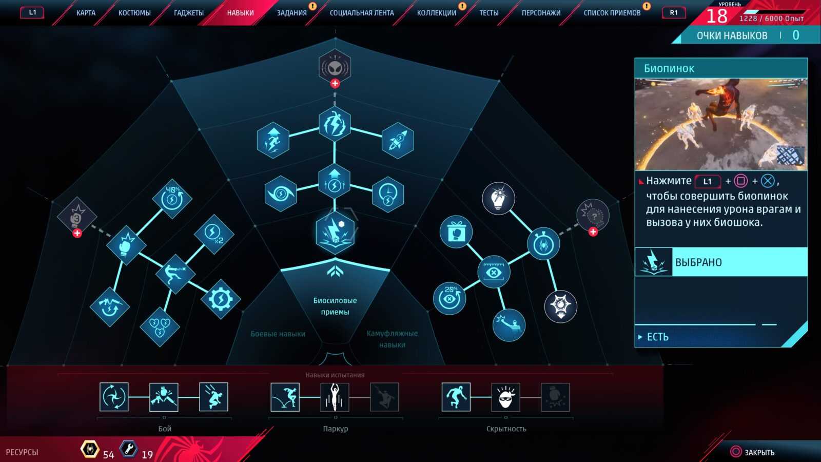 Геймплей за Майлза меняют способности. У нового Человека-паука сильно меньше гаджетов, зато есть два навыка, которые преображают драки. Примерно к концу игры я поймал себя на мысли, что почти не пользуюсь гаджетами, хотя в оригинале выигрывал драки чисто благодаря ним – мог даже не шевелиться особо.