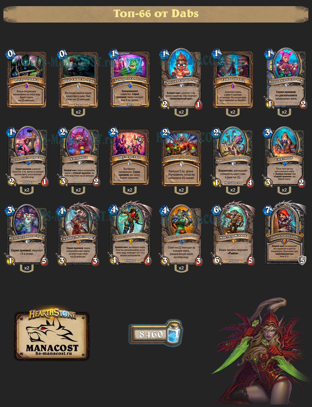 Ниже представлена альтернативная сборка от игрока Zyross в которой колода, представленная выше, претерпела небольшие изменения, она обойдется вам в 12180 тысяч чародейской пыли.