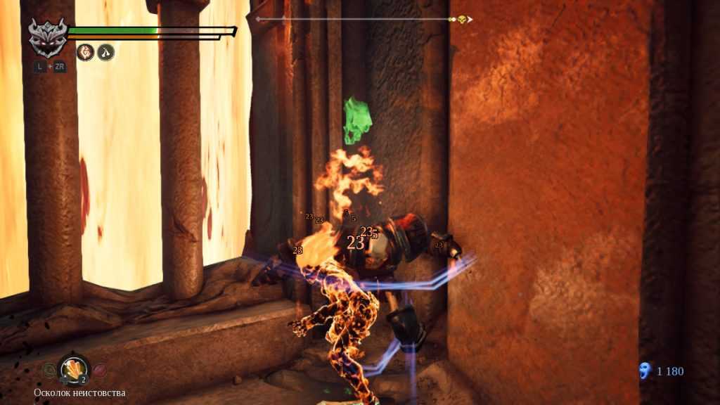 Появление новых способностей привязано к получению новых типов вооружения – благодаря огненным кинжалам у вас появится двойной прыжок, а с молниеносным копьем вы получите в придачу еще и левитацию. Выдаются средства умерщвления противников строго по сюжетной линии. Ту систему из Darksiders 2, позволяющую собирать с врагов разнообразный лут и заменять пушки с одними характеристиками на орудия помощнее, разработчики решили убрать. Под нож также пошла и система паркура – теперь он ограничивается только хлыстом, подтягиванием на уступах и разнообразными прыжками.