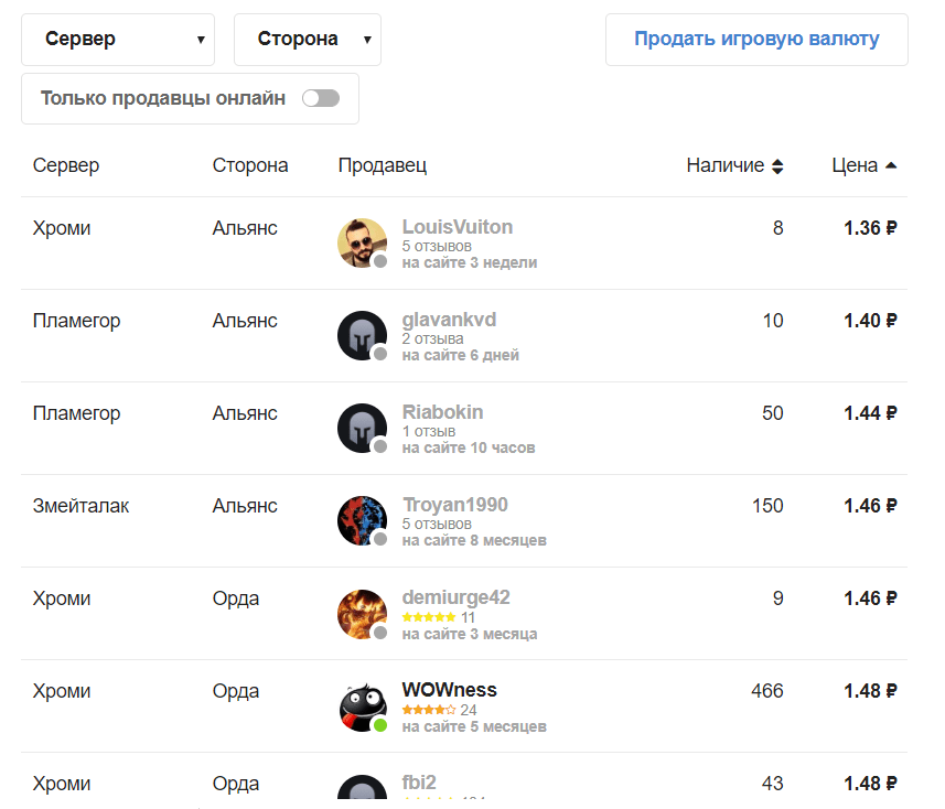 Главным недостатком такого способа будет непостоянство доходов. Например, в первое время после выхода контента будет заработок выше, чем к концу сезона. Будет повышаться предложение, а спрос падать, что приведет к уменьшению заработка. Еще можно работать через перекуп золота у ваших знакомых. Для некоторые голда это все лишь голда, поэтому они с лёгкостью ею делаться с вами.