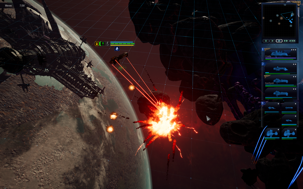 В игре присутствует большое количество кораблей в точности воссозданных по лору вселенной Warhammer 40k. К сожалению, в большинстве своём они очень похожи друг на друга, поэтому по началу вы будете путаться в выборе между 5 кораблями, каждый из которых отличается от другого только одной способностью или одной пушкой.