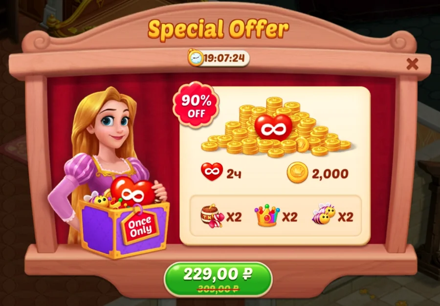 Ограниченные предложения. Периодически разработчики запускают продажу ограниченных наборов. В которые входят хорошие бустеры, монеты и бесконечные жизни. Это отличное вложение, так как за низкую цену вы получаете отличный набор, который поможет успешно пройти немало уровней в игре.