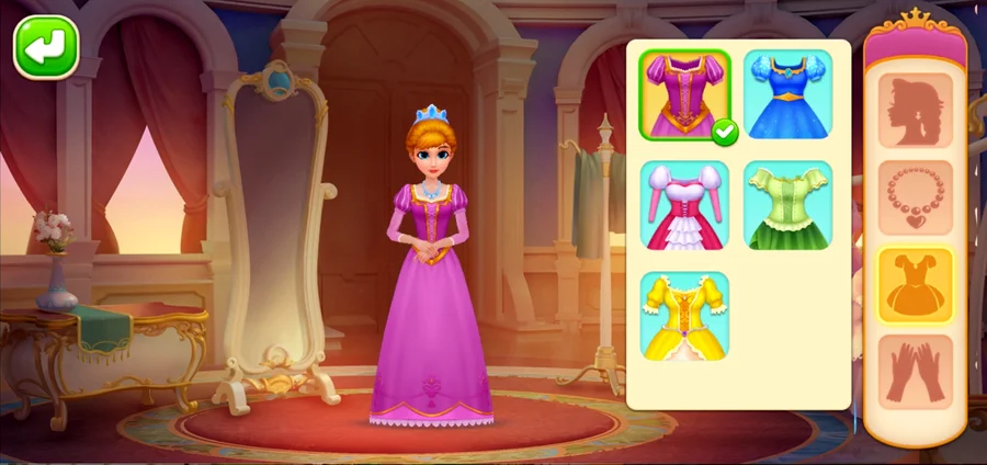 Гардероб. Ваша героиня любит наряды, поэтому в игре есть отдельный раздел «Гардероб», в котором вы можете сменить предметы одежды. Вы можете заменить платья, головной убор, украшения и украшение для рук. Это немного разбавляет атмосферу в игре и дает небольшое разнообразие.