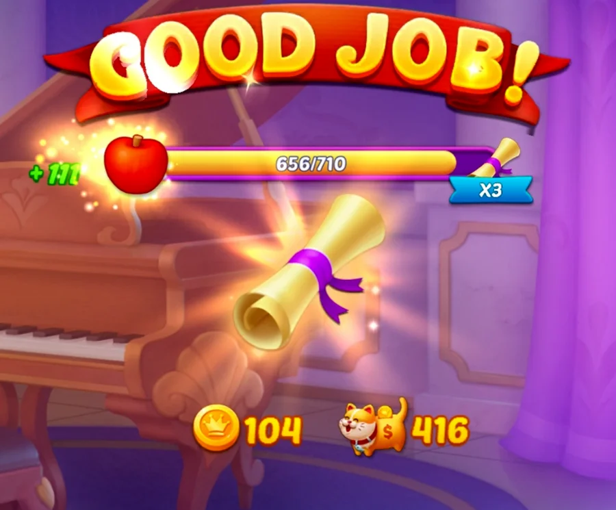 Чем больше у вас останется в запасе ходов, тем больше вы получите монет в награду за прохождение. Обычно ходы дают с запасом и после того, как вы пройдете уровень у вас могут оставаться ходы, за которые вы получите дополнительную прибыль в виде золотых монет.
