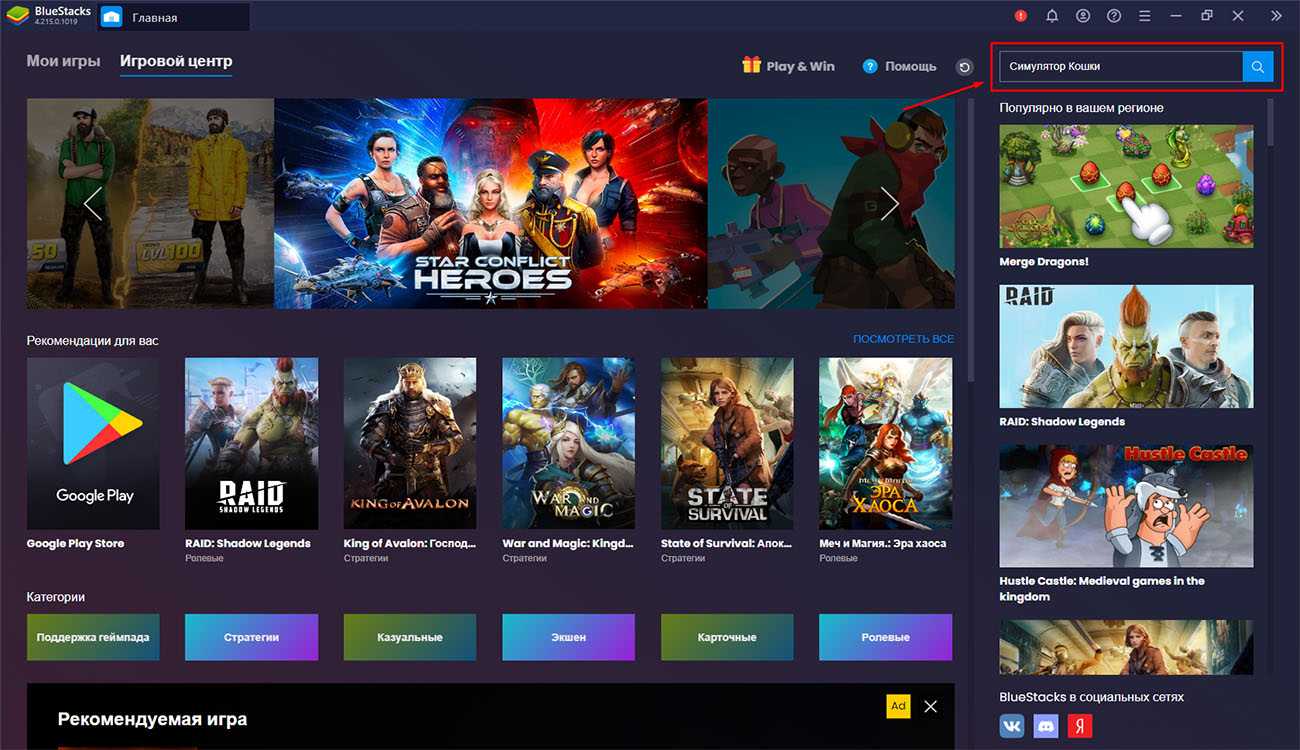 Для того чтобы поиграть в Симулятор Кошки на ПК, вам потребуется специализированный носитель, фактически это аналог смартфона. Подобное устройство можно создать через эмулятор, это специализированный софт. Мы рекомендуем использовать программу под названием BlueStacks 3, она находится в открытом доступе и отличается интуитивно понятным интерфейсом.
