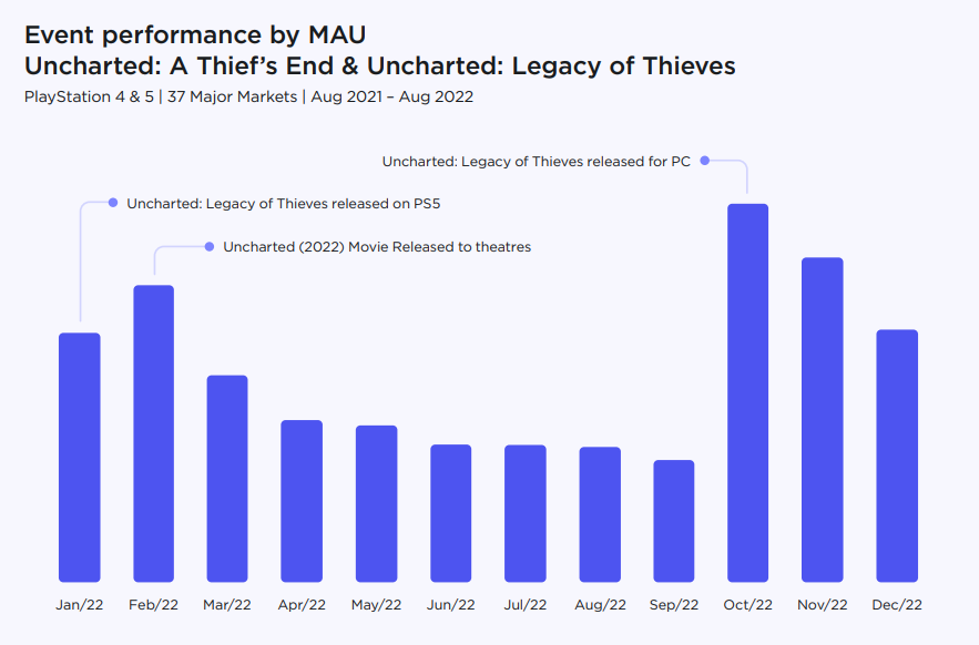 Влияние новых релизов на MAU Uncharted: A Thief’s End и Uncharted: Legacy of Thieves на платформах PlayStation 4 и 5
