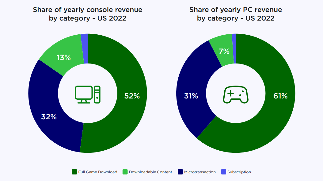 Да, на внутриигровые платежи в США приходится приходится более 30% всей игровой выручки с PC и консолей (к сожалению, оценки по распределению объема продаж по типу контента в мире в конкретном случае не приводится).