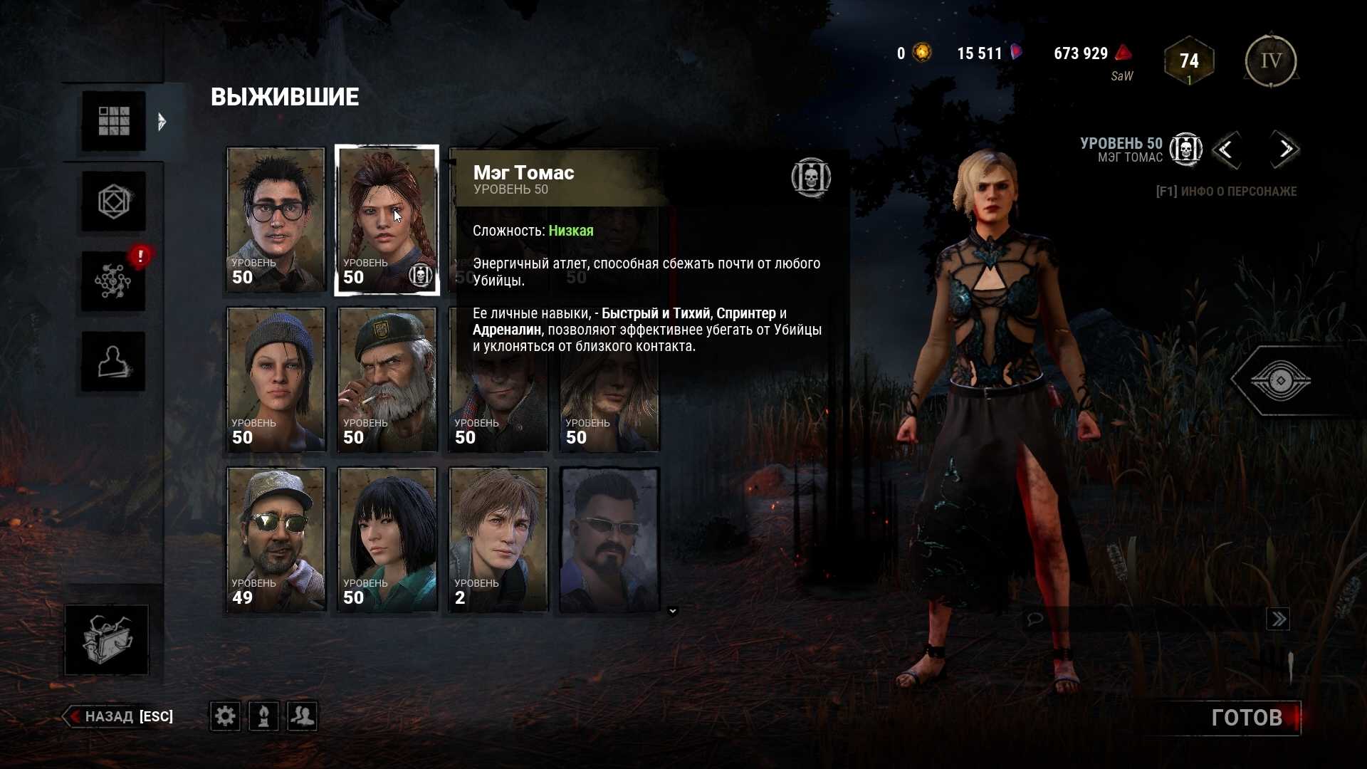 Каждый персонаж игры имеет свои особые навыки и преимущества. Одни выжившие лучше бегают, другие чинят генераторы, а третьи созданы для проявления альтруизма. У убийц также есть свои козыри — один может устроить резню бензопилой, другой метнуть топор, а третий — подкрасться в невидимости.