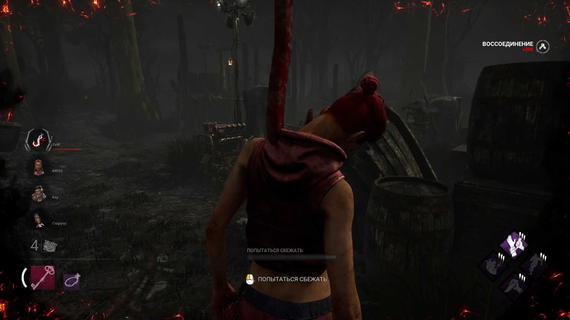 Если убийца все же поймал Вас, у Вас будет немного времени (пока Вас несут на крюк), чтобы попытаться вырваться из его лап.