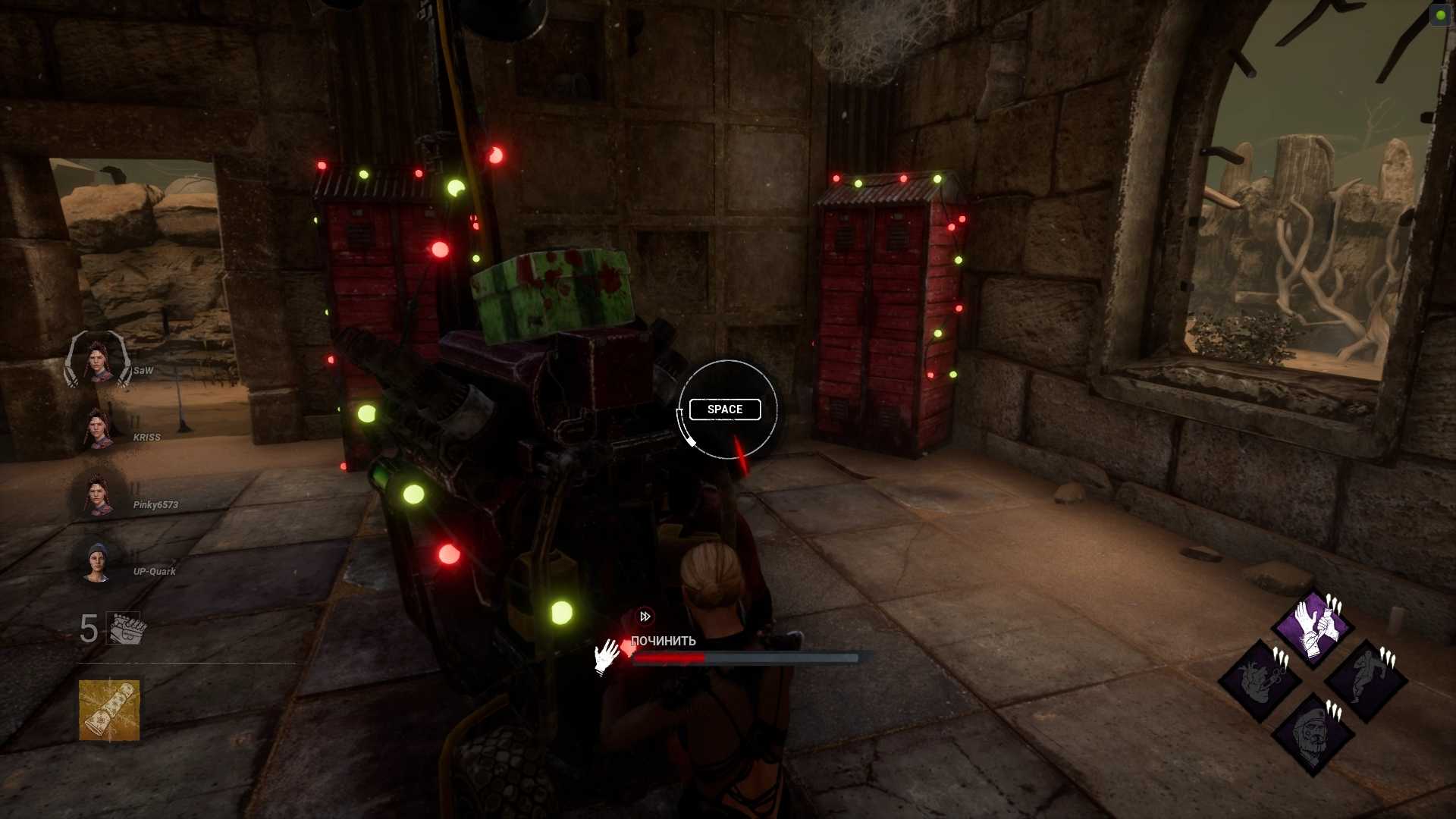 Их главная задача – отыскать и починить пять генераторов, после чего откроется спрятанный люк или ворота, и можно будет совершить побег с территории карты. Правда, на ремонт требуется определенное время, во время которого персонаж становится особенно беззащитен.