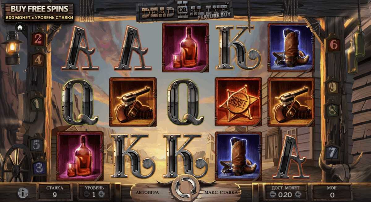 - Old Saloon – стандартная бонусная игра из первой части (Dead or Alive). Здесь каждый выпавший символ-замена остается на своем месте до конца бонусной игры. Если в течение бесплатных раундов на всех пяти барабанах выпадает хотя бы по одному WILD, то игроку присуждаются дополнительные пять фриспинов;