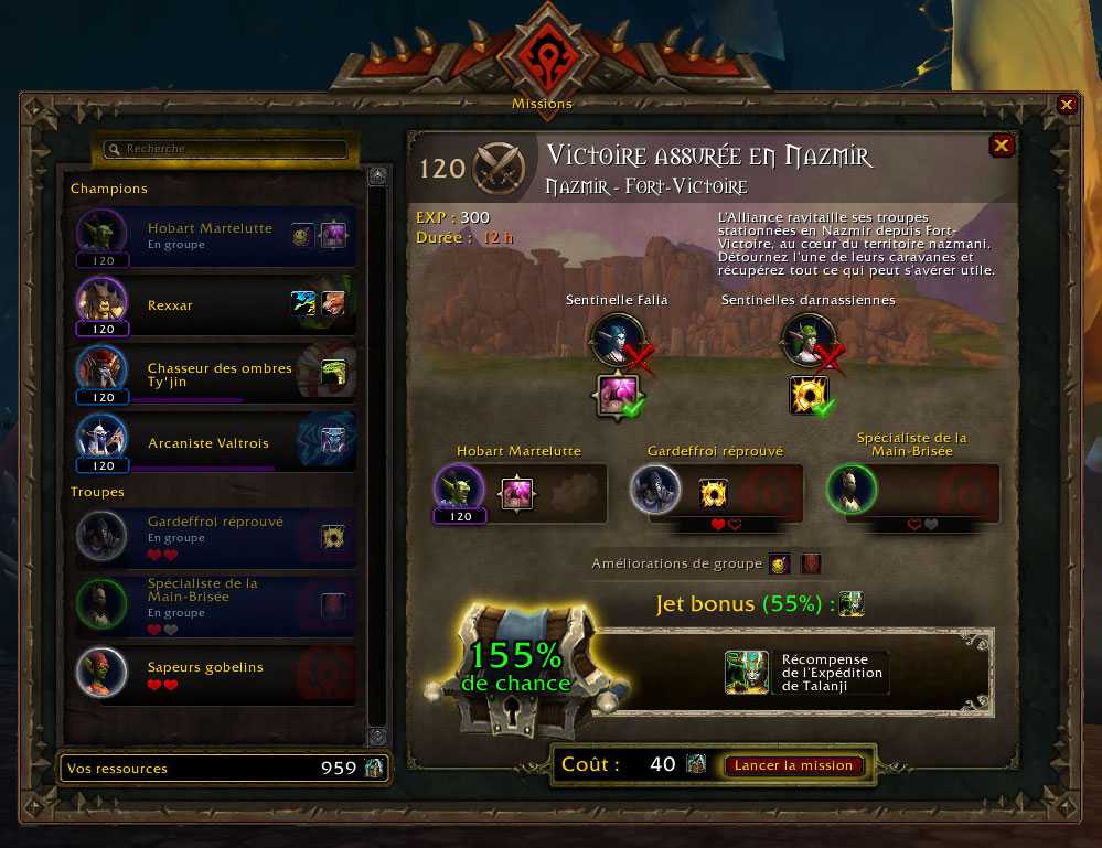 - L’émissaire est débloqué en même temps que les expéditions au niveau 50.