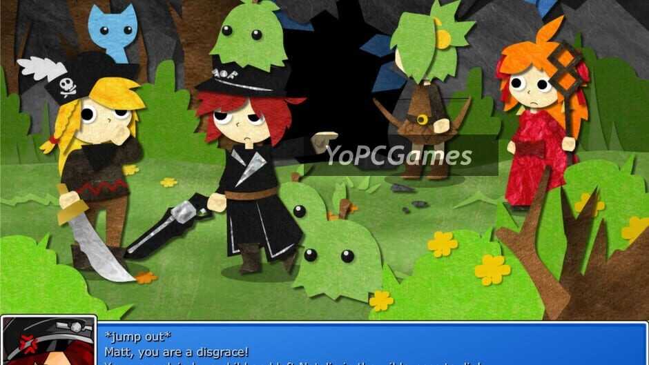 Previously on Epic Battle Fantasy 3, the ancient demon Akron was destroyed by three young adventurers and their pet cat. Matt the warrior, Natalie the magician, and Lance the gunman had saved the world and become living legends. Afterwards, the heroes pillaged towns for a living, because they could get away with it. They saved the world from certain destruction, after all, so it may be argued that they earned the right to everything within it. This behavior quickly made them many enemies.