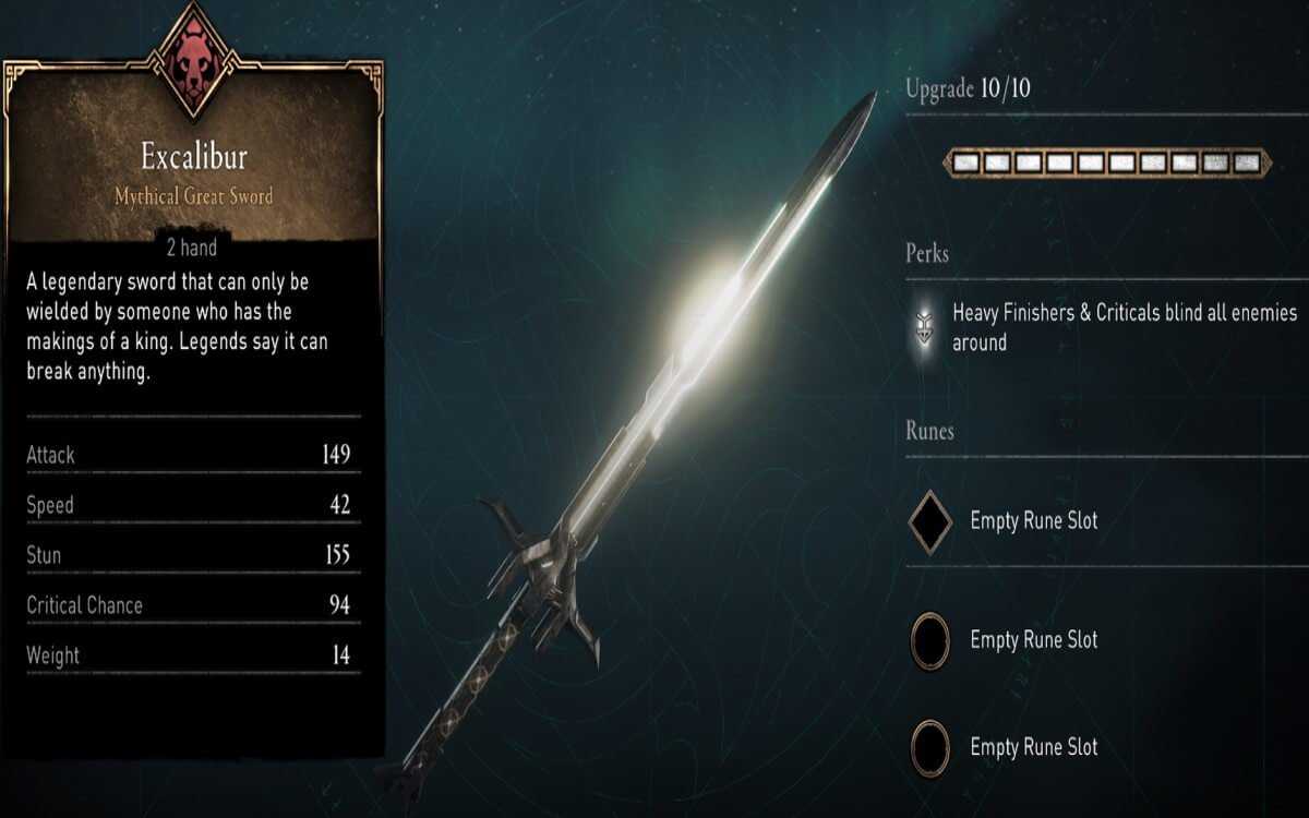 Легендарный меч в камне, которым, по преданию, владел король Артур, можно найти в Assassin’s Creed Valhalla. Он доступен только в конце игры, но когда вы его приобретете, то получите мифический предмет, причем семь из десяти слотов модернизации будут заполнены.