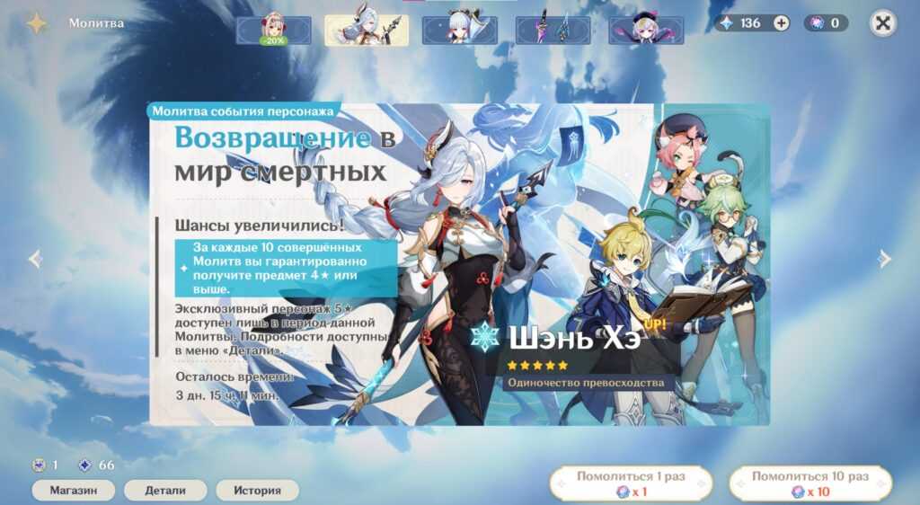 Молитвы событий в Genshin Impact — это временные баннеры для легендарных персонажей, которых нет в Жажде странствий. Пожертвовав переплетенными судьбами, есть определенный шанс получить пятизвездочного героя от Молитвы события персонажа.