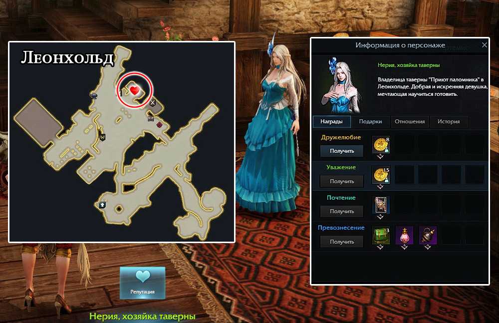 Однако вложить придется чуть более 38000 очков репутации. Серьезно помогают квесты, которые выдает сама Нерия и, конечно, разнообразные подарки.