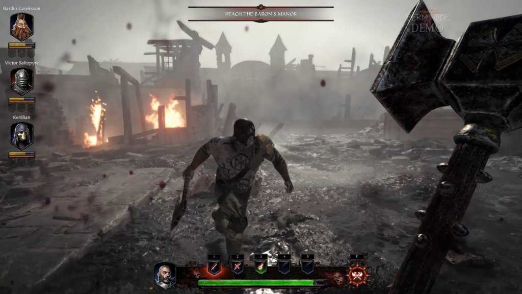 The real joy in Vermintide (IMHO), comes from putting all of the above together. It’s timing patterns of attacks carefully to deal with the exact mix of enemies you’re facing, while dodging, blocking, and pushing in a little «dance” to avoid taking damage. Through all of this, you’ll need to be mindful of your positioning and work with your team to watch each other’s backs. It’s a lot of fun.