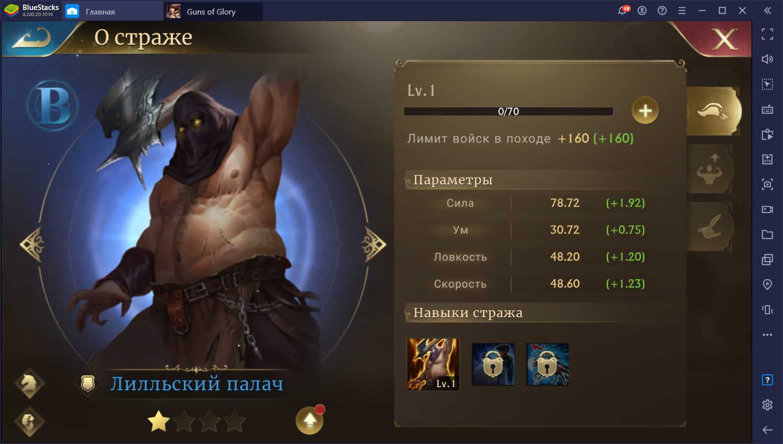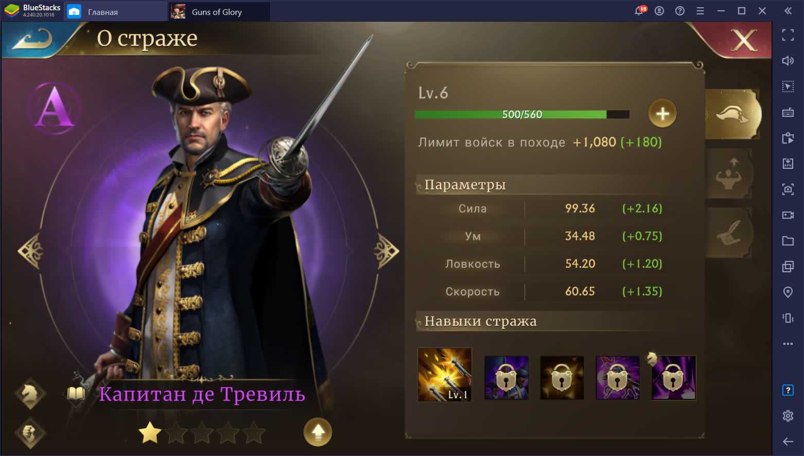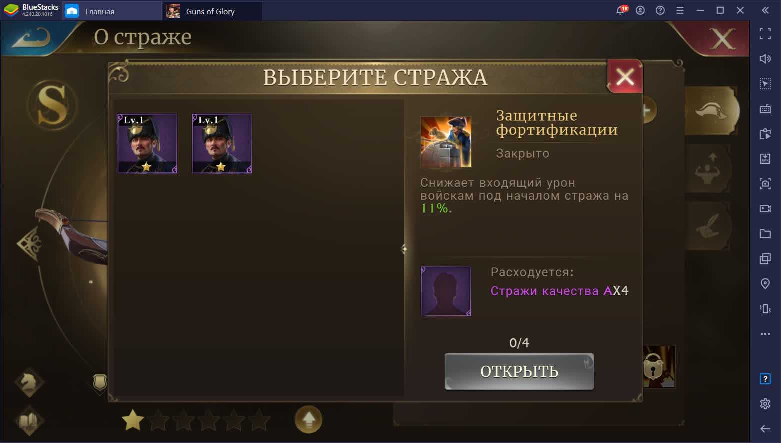 Подобно другим проектам жанра RTS, в Guns of Glory есть ранжирование героев по уровню качества. Чем эксклюзивнее страж, тем больший положительный эффект он оказывает на общую силу вашей армии.