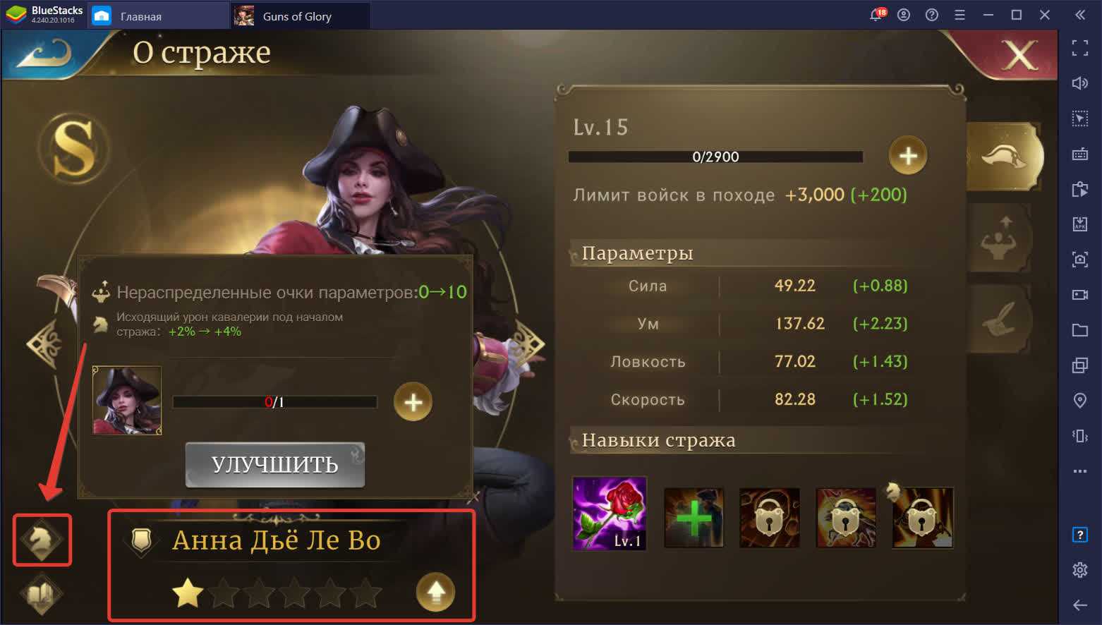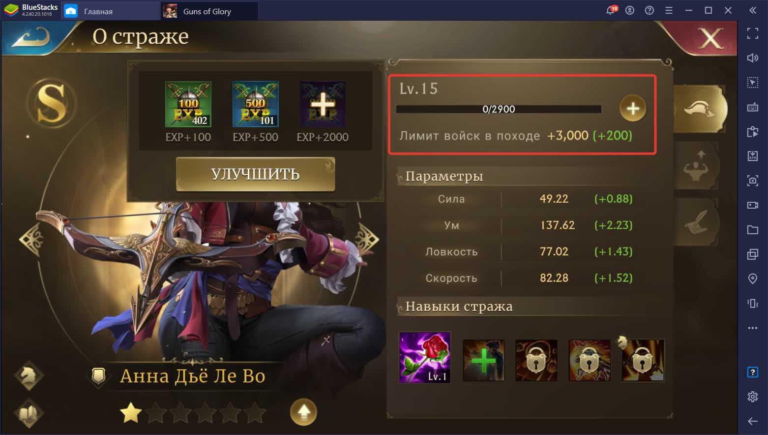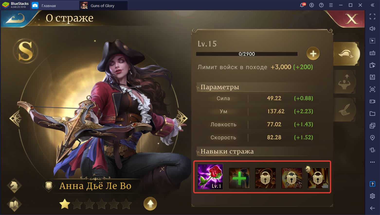 Для приобретения навыка вам необходимо потратить определенное количество карт персонажей качеством ниже. Так, для нашего случая с разблокировкой второй способности легендарной Анны Дье Ле Во понадобится 4 карты стражей качества A.