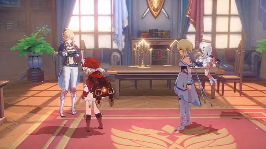 Телепортируйтесь обратно в Мондштадт и зайдите в кабинет Джинн, где уже ждет не только ио магистра Ордо Фавониус, но и Кли. Она раскаивается, что кого-то покалечила, даже несмотря на то что это был враг. Джинн не рассказывала Кли об Ордене Бездны и, в качестве извинения, позволила девочке участвовать в праздновании Луди Гарпастум.