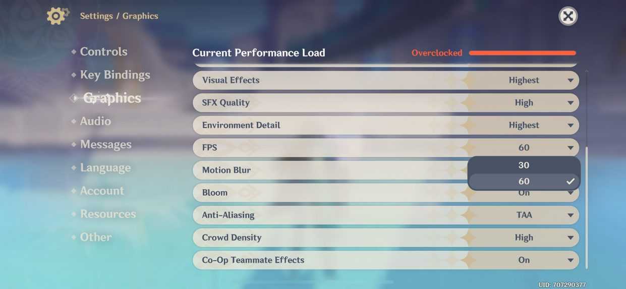 На iPhone 15 Pro Max я выкрутил абсолютно все настройки Genshin Impact на максимум, перезапустил игру для их применения и пробежался по абсолютно всем типовым сценариям – все города, локации, бои в открытом мире и в «подземельях».