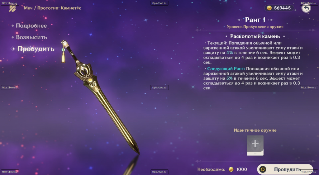 Однако, для пробуждения требуется совершенно идентичное оружие любого уровня, поэтому Пробуждение стоит применять перед тем, как вы станете повышать уровень оружия. И это очевидно почему – ведь вы в автоматическом распределении оружия при повышении его уровня можете истратить то оружие, которое могло бы Пробудить его