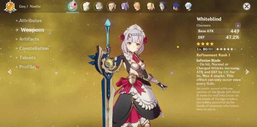 Меч белая тень – очень специализированное оружие, которое могут использовать полтора персонажа. Характеристика защиты нужна только на персонажах, способностями которых является защита, и даже для Ноэль выбор между Белой Тенью и Архаикой нетривиален: до шестого созвездия Архаика наносит больше урона, хотя у Белой Тени преимущество сильнее исцеление и более сильные щиты.