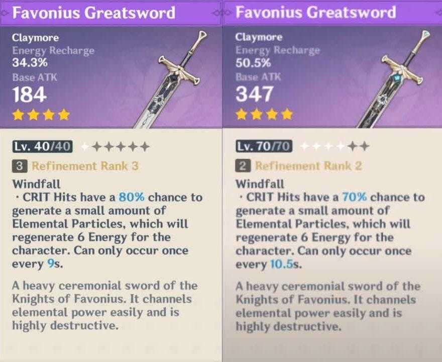 Это отличный меч для персонажей поддержки, так как он имеет высокую скорость регенерации энергии. Меч Фавонии требует, чтобы вы собирали шанс критического удара, что немного противоречит цели поддержки: дешевый юнит, который получает ваш основной урон. В то же время для вторичных ДД это оружие также нежелательно, так как имеет очень низкую базовую атаку. Этот меч отлично подходит для поддержки/вторичного урона в поздней игре, когда у вас есть возможность вложить ресурсы во всю команду, так как меч Фавониус даст вашей команде постоянный заряд энергии, чтобы зарядить ульты всей команды.