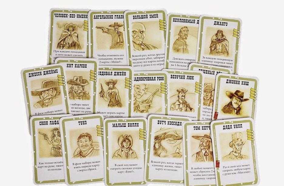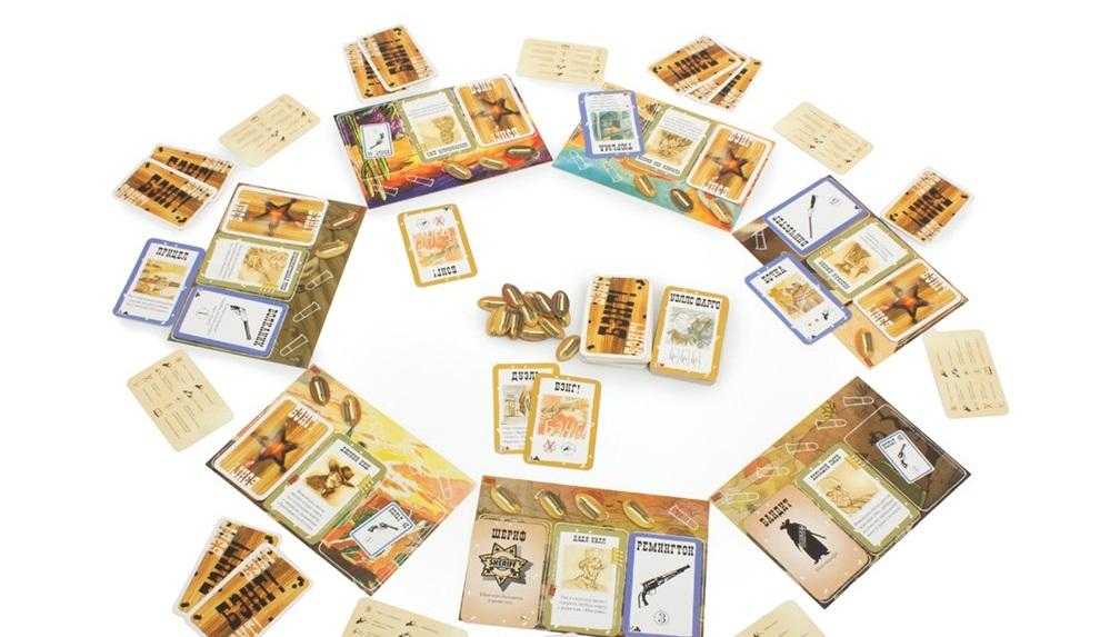 - Каждому игроку взять столько пуль, сколько нарисовано на его персонаже и разместить на своём игровом планшете.и Шериф играет с одной дополнительной пулей. Например, если на его карте персонажа нарисованы три пули, он начинает игру с четырьмя патронами.