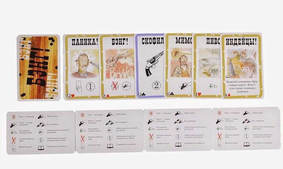 - Сброс – использованные и лишние карты «Бэнг» возвращаются в колоду.