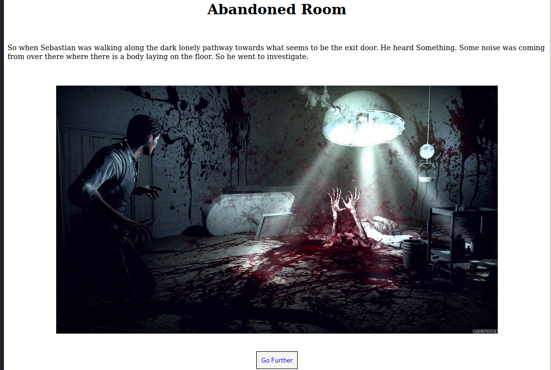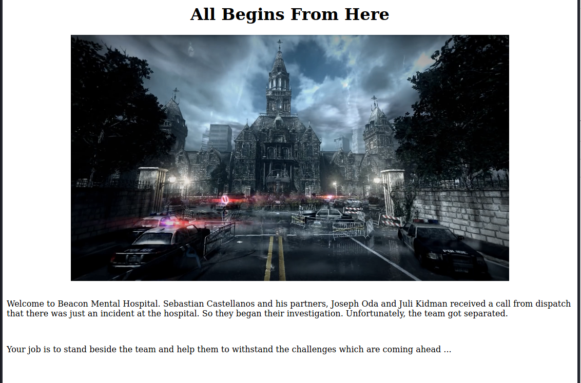 I loaded http://target/, the site is themed around the video game Evil Within. It consist of an image and some text about an incident at a mental hospital.
