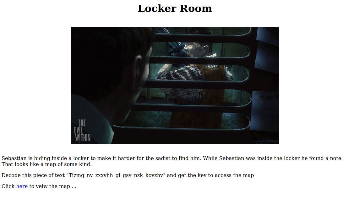In the locker room, we have another link to the map. This time it’s a php file. There is an encoded text that we need to decode to access the map.