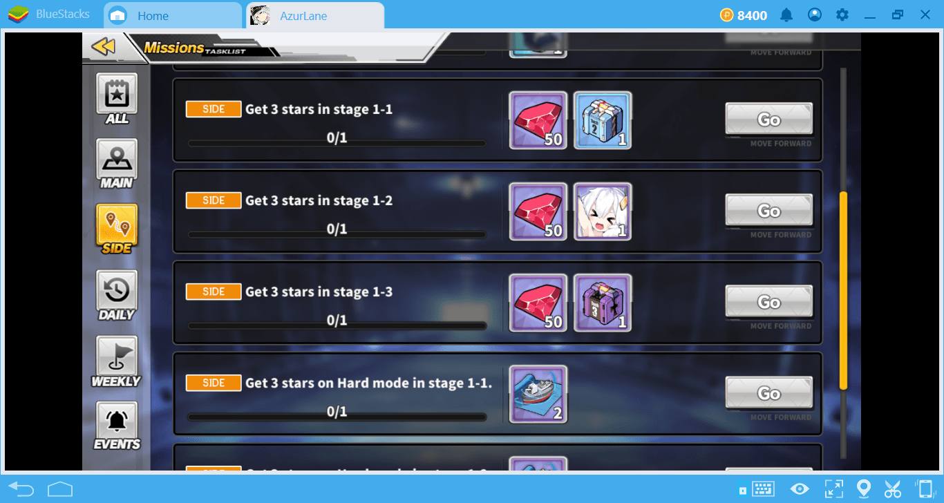 Миссии в этой категории на самом деле являются дополнительными целями основных миссий. Если вы достигнете всех дополнительных целей во время выполнения сюжетных миссий, вы можете заработать различные призы, такие как драгоценные камни, новые корабли и ящики с добычей.