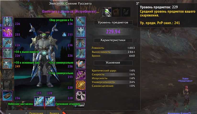 Но это не значит, что за уровнем предмета оружия теперь не нужно следить. Изначально оно равняется 815, но в процессе его можно поднять до максимального значения, предусмотренного аддоном.