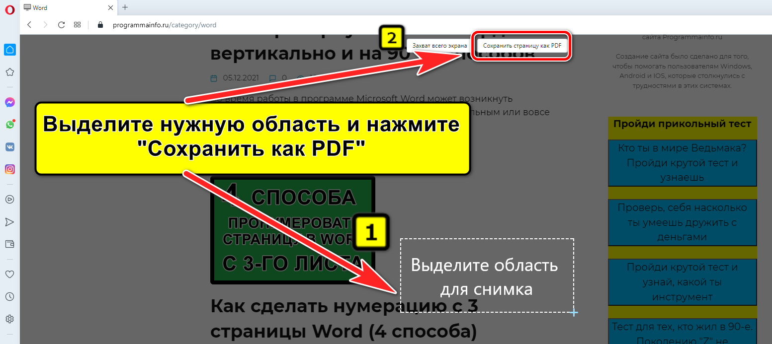 В Opera последних версий тоже есть свой скриншотер. Нужно просто нажать на иконку «Снимок» либо нажать Ctrl + Shift + 5