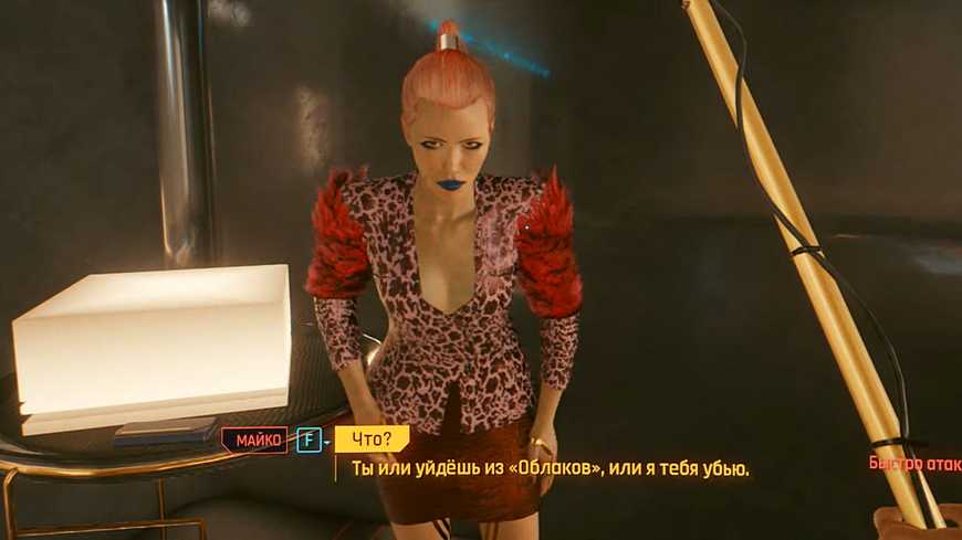 - “Ты или уйдешь из “Облаков”, или я тебя убью” (битва начнется сразу) или “Что?”.