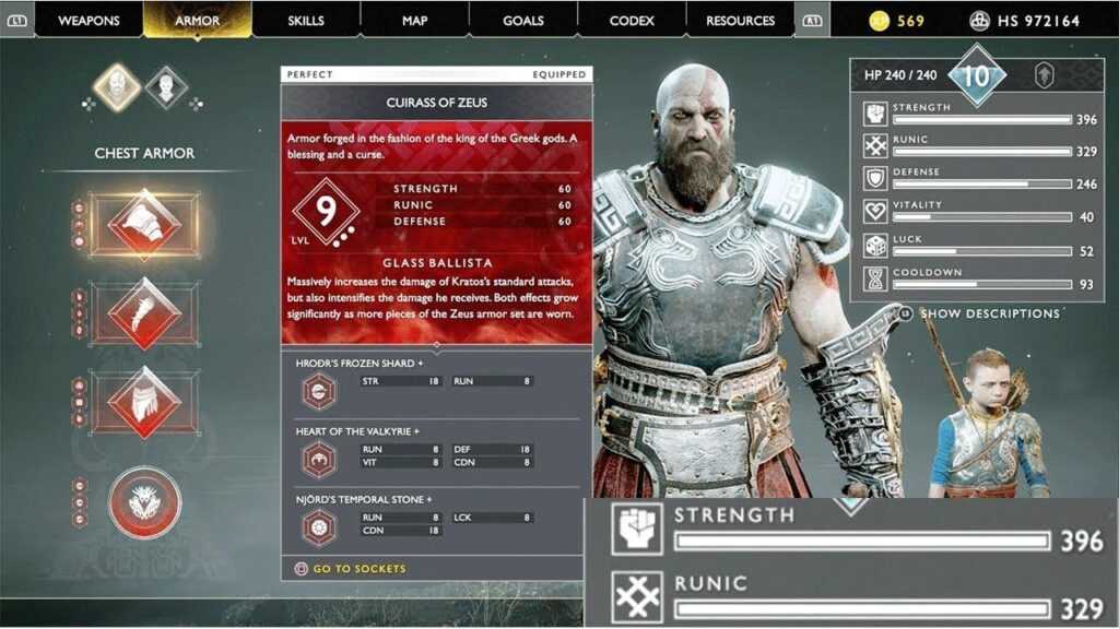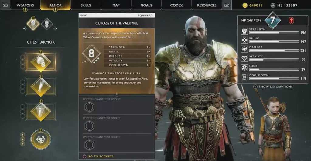 Эти доспехи не только обладают потрясающими характеристиками, но и снижают перезарядку рунических атак, что значительно повышает боевую мощь Кратоса.