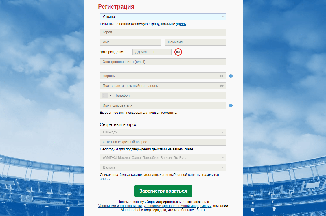 Как зарегистрировать новый игровой счёт в Marathonbet