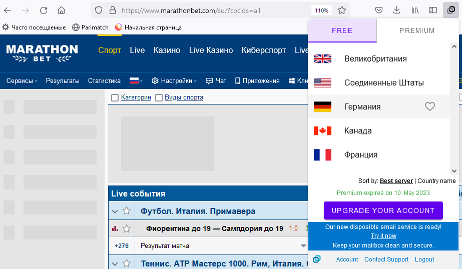 В интернете можно найти платные и бесплатные ВПН-сервисы, которые устанавливаются на ПК или в браузер. Например, на официальном сайте букмекера есть рекомендация использовать VPN-плагины ZenMate и Hola, доступные для браузеров Chrome, Opera и Firefox.