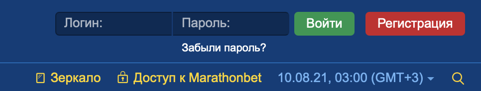 Для входа в личный кабинет на сайте рабочего зеркала следует ввести логин и пароль в самом верху страницы и нажать зеленую кнопку Войти. Зарегистрировавшись один раз в букмекерской конторе, пользователь может работать на всех доступных зеркалах и в приложениях под одним логином. При смене зеркала потребуется новая авторизация. Необходимо помнить, что по правилам букмекерской конторы пройти регистрацию в Marathonbet можно только один раз. Проверка пользователей системой безопасности осуществляется при первом выводе выигрышей.