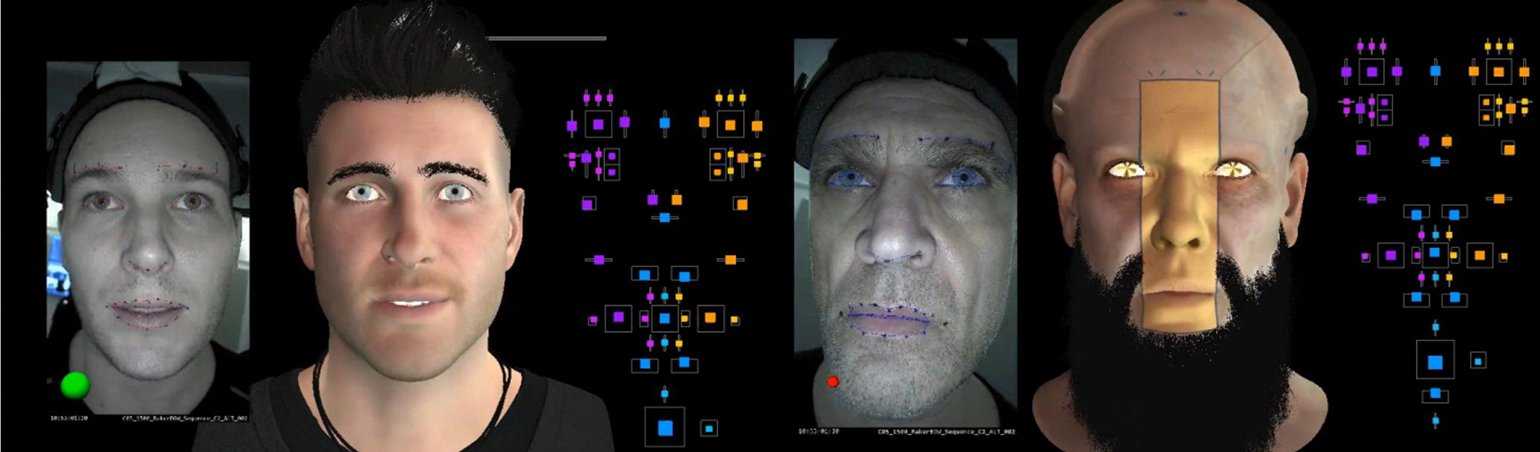 - Анимация на основе отснятых видеоматериалов. Во многих играх для создания лицевой анимации используют звуковые дорожки. Через звук можно реализовать точную синхронизацию движений губ, но возникает вопрос, как подтянуть к такой анимации остальные мышцы лица. Обычно в этом процессе задействована процедурная генерация, которая не всегда даёт удовлетворительные результаты. В случае, когда анимацию делают на основе видео, мимика персонажа получается более живой и утончённой.