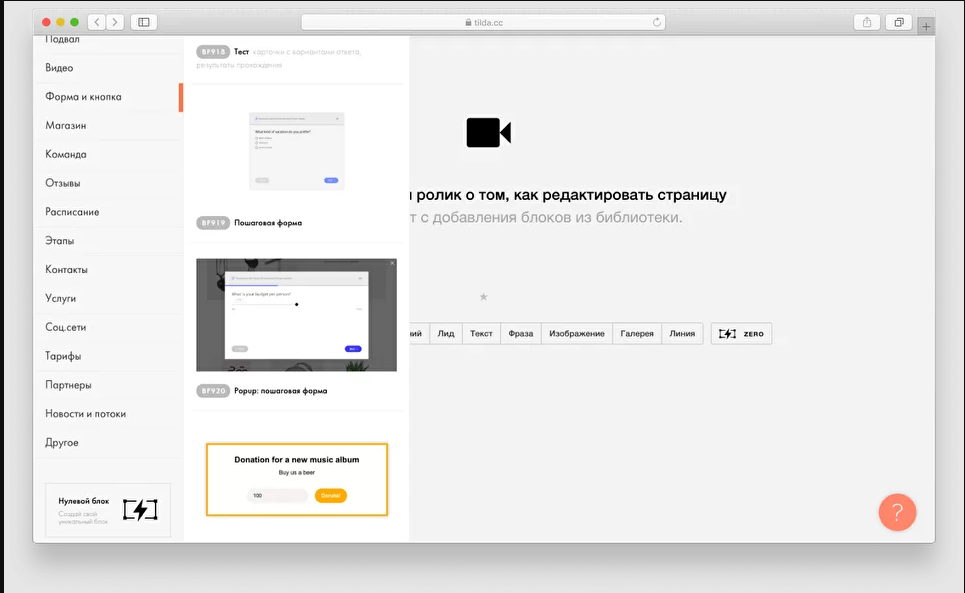 Нулевой блок – это инструмент для профессиональных дизайнеров. С его помощью можно создать уникальный сайт с нуля. Сделать квиз в ZeroBlock можно в несколько шагов: