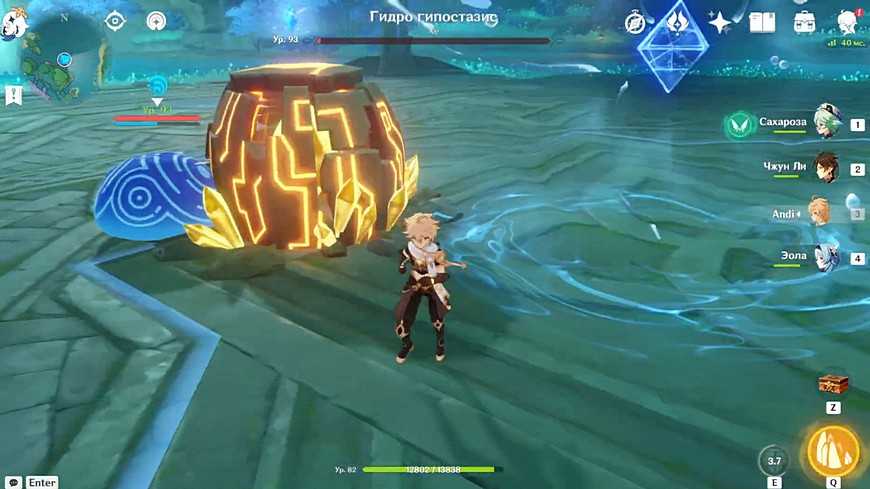 Достижение «Нелегкий путь обратно» Камни Истока 5 шт.Остановите возрождение Гидро гипостазиса, создавая препятствия и подбрасывая их, не разрушив ни одной из капель воды.
