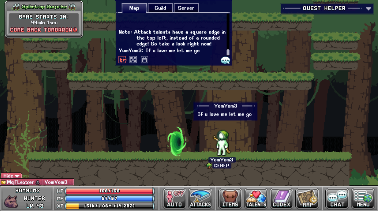 Чтобы попасть на локацию этой мини-игры, напишите в чате «If u love me let me go» (с учетом регистра, и не набирайте в чате гильдии/сервера)