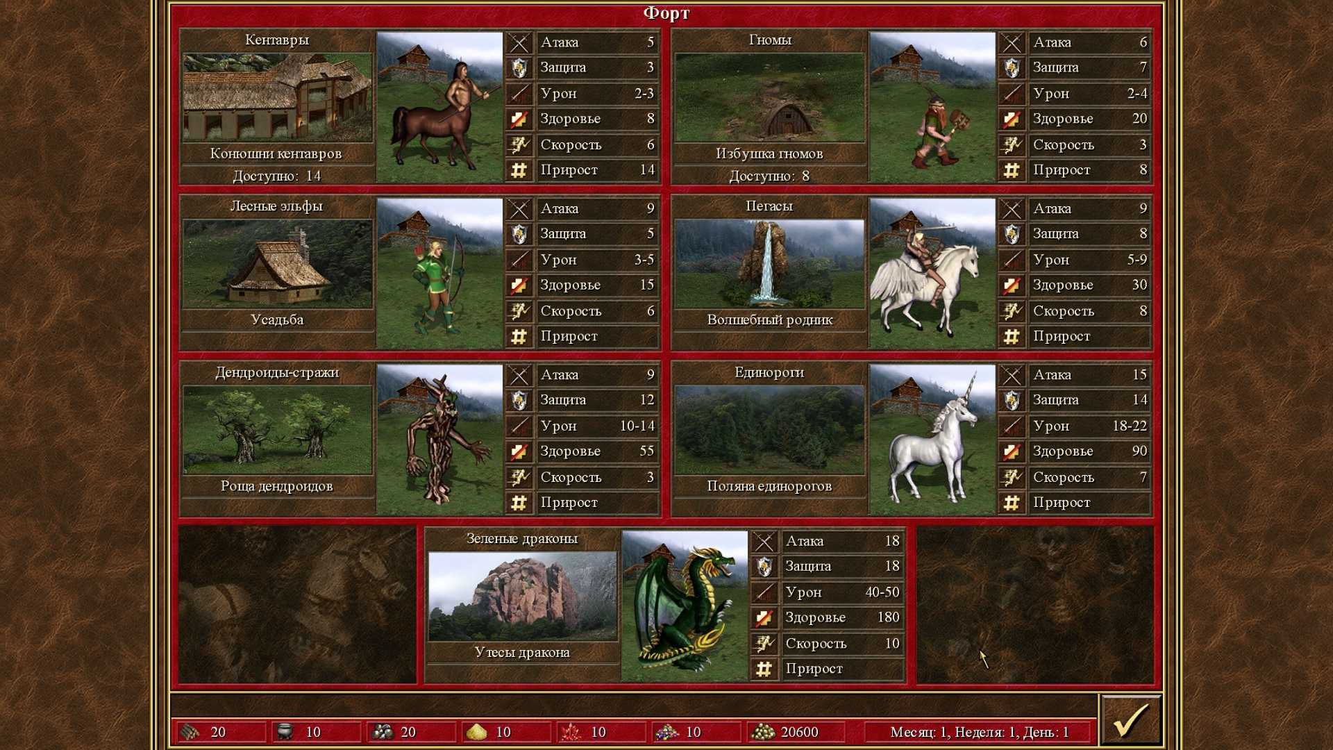 После первоначальной отстройки города армия эльфов особо не изменяется – к кентаврам, эльфам и пегасам добавляются драконы и единороги (последние – если золота хватает). Тактика против нейтралов проста – по пехоте эльфы стреляют, а прочие зачищают подходящих врагов, стрелки блокируются пегасами и драконами, которые довольно живучи в такой рукопашной, большинство летунов не успевает эльфов заблокировать – опережают пегасы и драконы, даже если герой не обзавелся Тактикой.