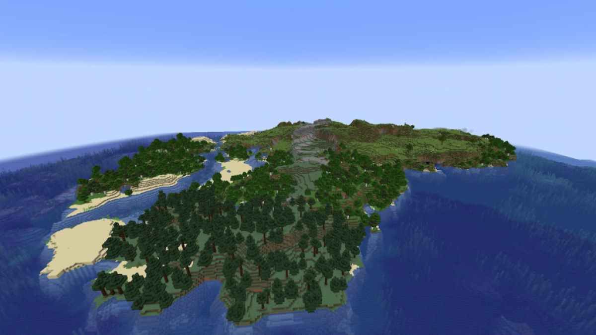 Этот гигантский остров просто полон жизни! Он содержит несколько биомов, включая биомы Проветренных холмов, Тайги, Леса и Равнин. Биом Равнин занимает большую часть острова и служит домом для свиней, коров, лошадей и многих других животных! На правом краю острова есть пещера, ведущая в глубокий сланец, где вам нужно начать собирать подземные ресурсы. Это идеальный остров для тех, кто хочет самостоятельно поддерживать свои игры.