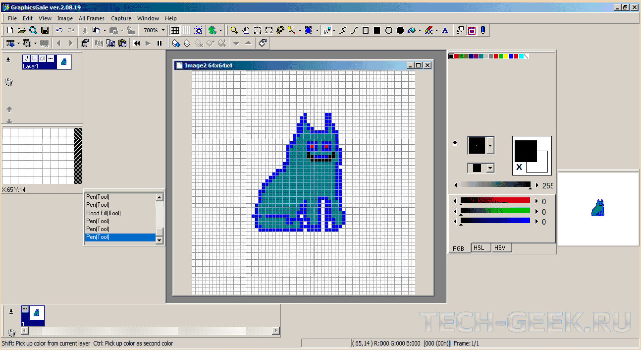 GraphicsGale — один из первых редакторов, который был создан специально для пиксельной графики. Детище японской компани HUMANBALANCE, которое вы можете установить совершенно бесплатно, но, к сожалению, только на Windows.