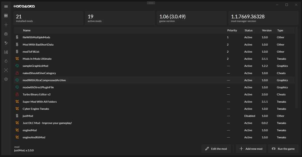 Менеджер модов для Cyberpunk 2077. Удобный инструмент для установки, настройки и удаления модификация.