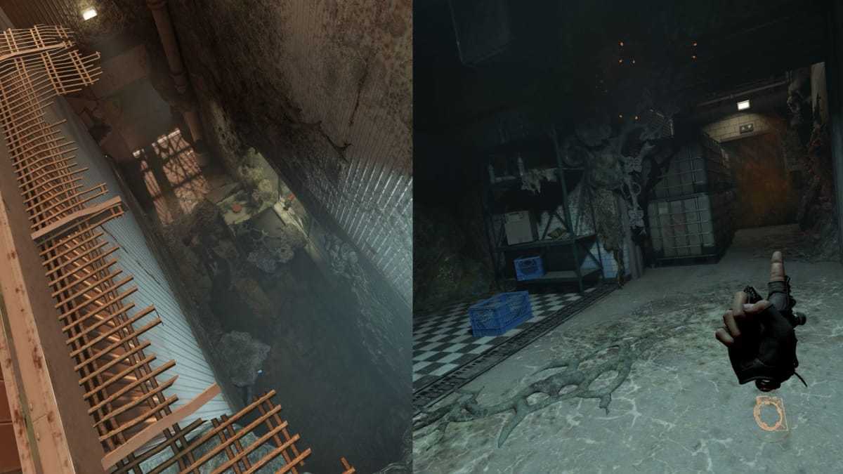 Это не совсем головоломка, а скорее задача не смекалку, но она тоже может вызвать трудности у тех, кто не так давно играет в виртуальной реальности. Диспозиция такая: во время блужданий по канализации Аликс находит подвешенного сотрудника Альянса, у которого в руках дробовик. Разумеется, это оружие необходимо заполучить. Но гравитационные перчатки Рассела не действуют, потому что «комбайн» держит дробовик мертвой хваткой. Буквально.